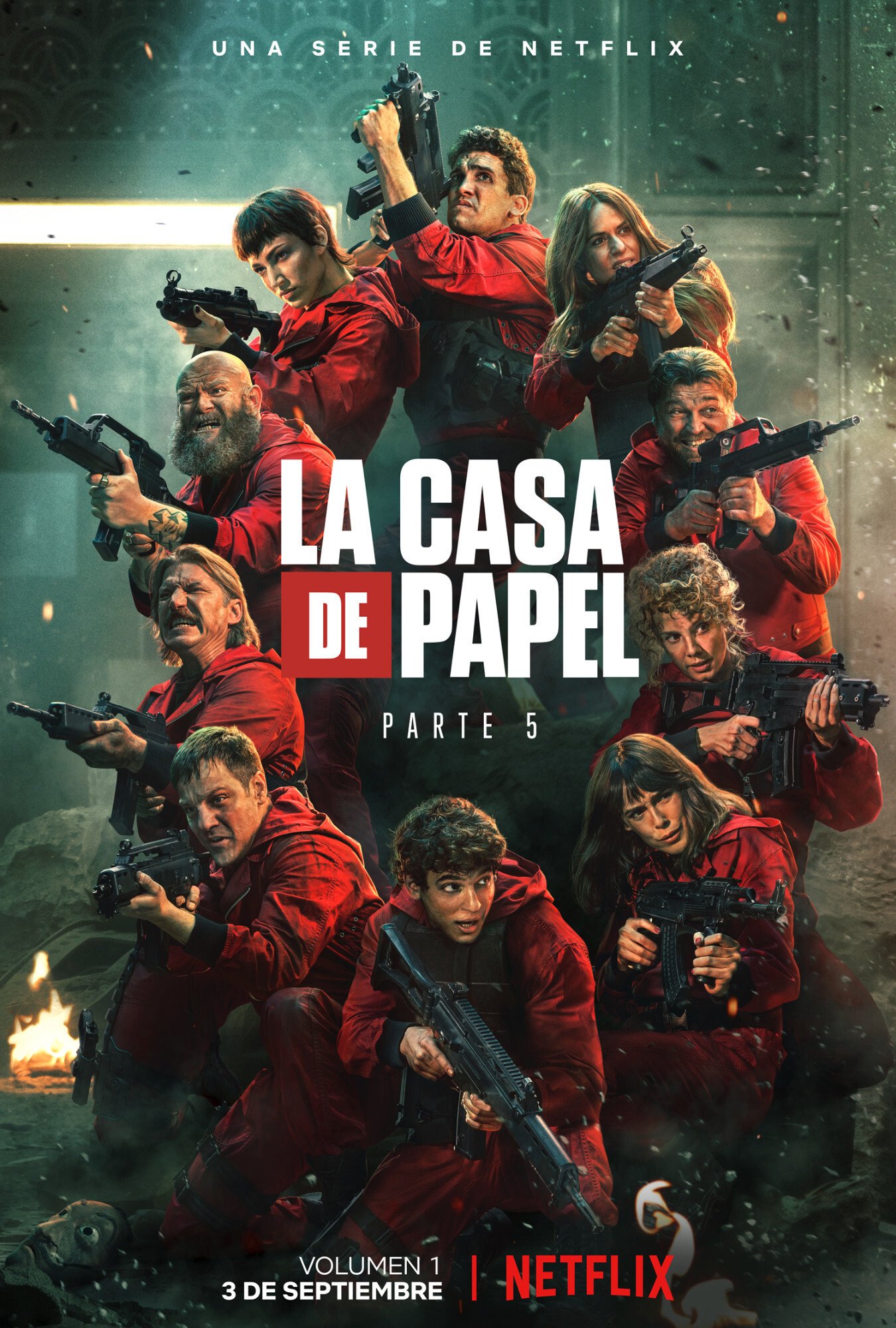 Netflix pokazał kolejne fotki promujące pierwszą część 5 sezonu serialu Dom z papieru, który pojawi się na platformie już 3 września. Wśród obsady znajdują się: Úrsula Coberó, Álvaro Morte , Itziar Ituño, Pedro Alonso, Miguel Herrán, Jaime Lorente, Esther Acebo, Enrique Arce, Darko Peric, Hovik Keuchkerian, Luka Peros, Belén Cuesta, Fernando Cayo, Rodrigo de la Serna, Najwa Nimri, José Manuel Poga, Miguel Ángel Silvestre i Patrick Criado.